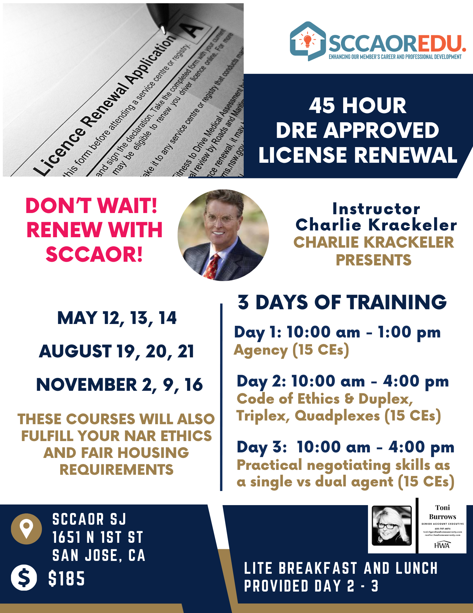 Get your total 45 CE hours completed for your license renewal.